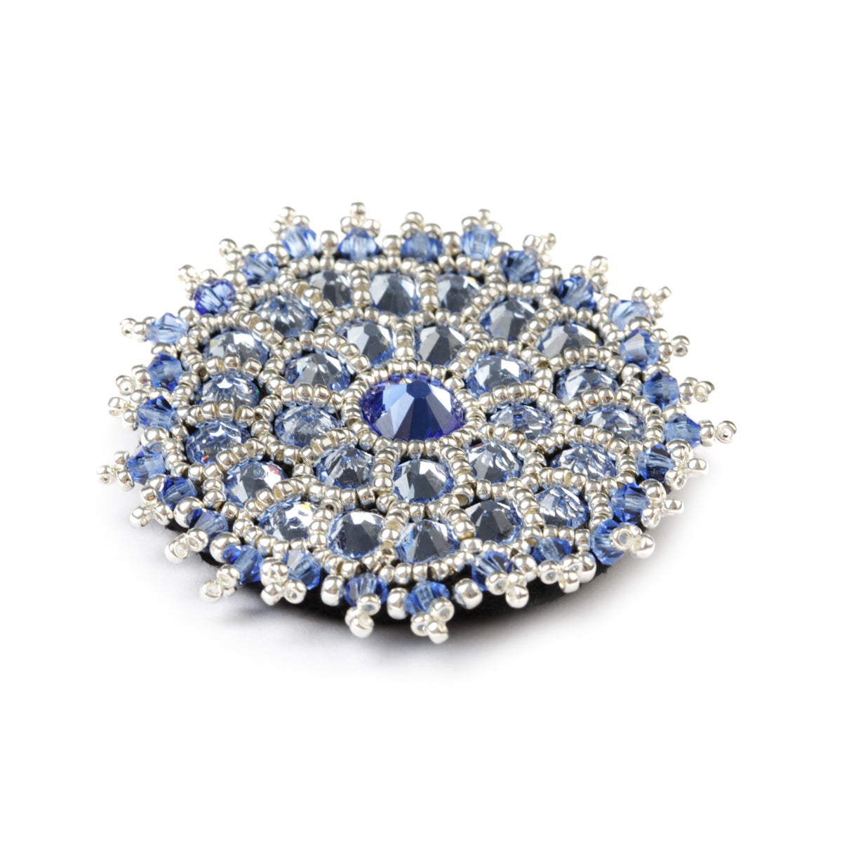 Objavte originálnu ručne robenú brošňu No. 18 zo striebornej kolekcie Dew. Tento šperk s priemerom 4 cm kombinuje luxus a ľahkosť - váži menej ako 15g, čo umožňuje nosenie aj na najjemnejších látkach ako je hodváb.