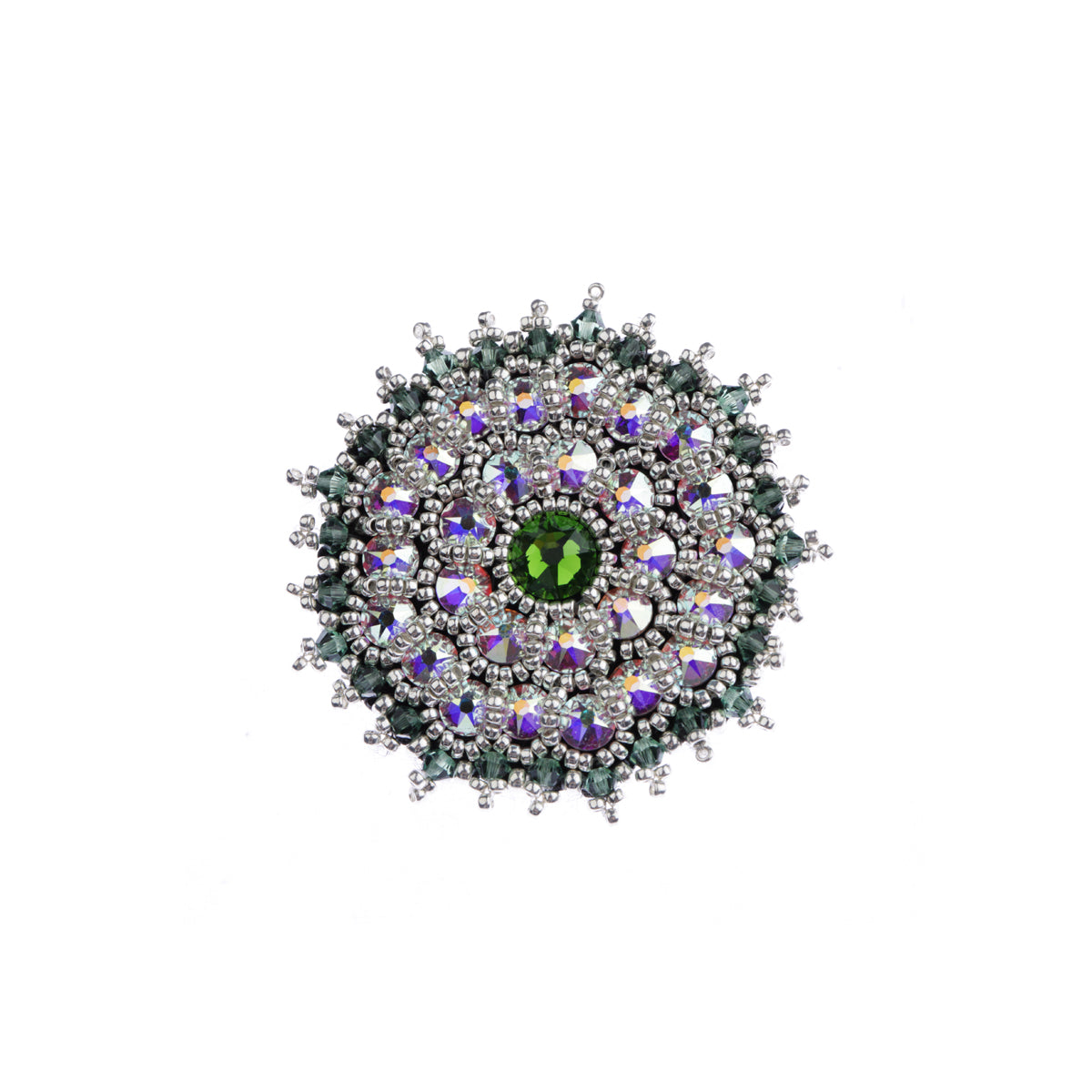 Predstavujeme originálnu ručne robenú brošňu No. 301 zo striebornej kolekcie Dew. Tento jemný šperk s priemerom 4 cm a váhou pod 15g je ideálnym doplnkom aj na najjemnejšie materiály ako hodváb.