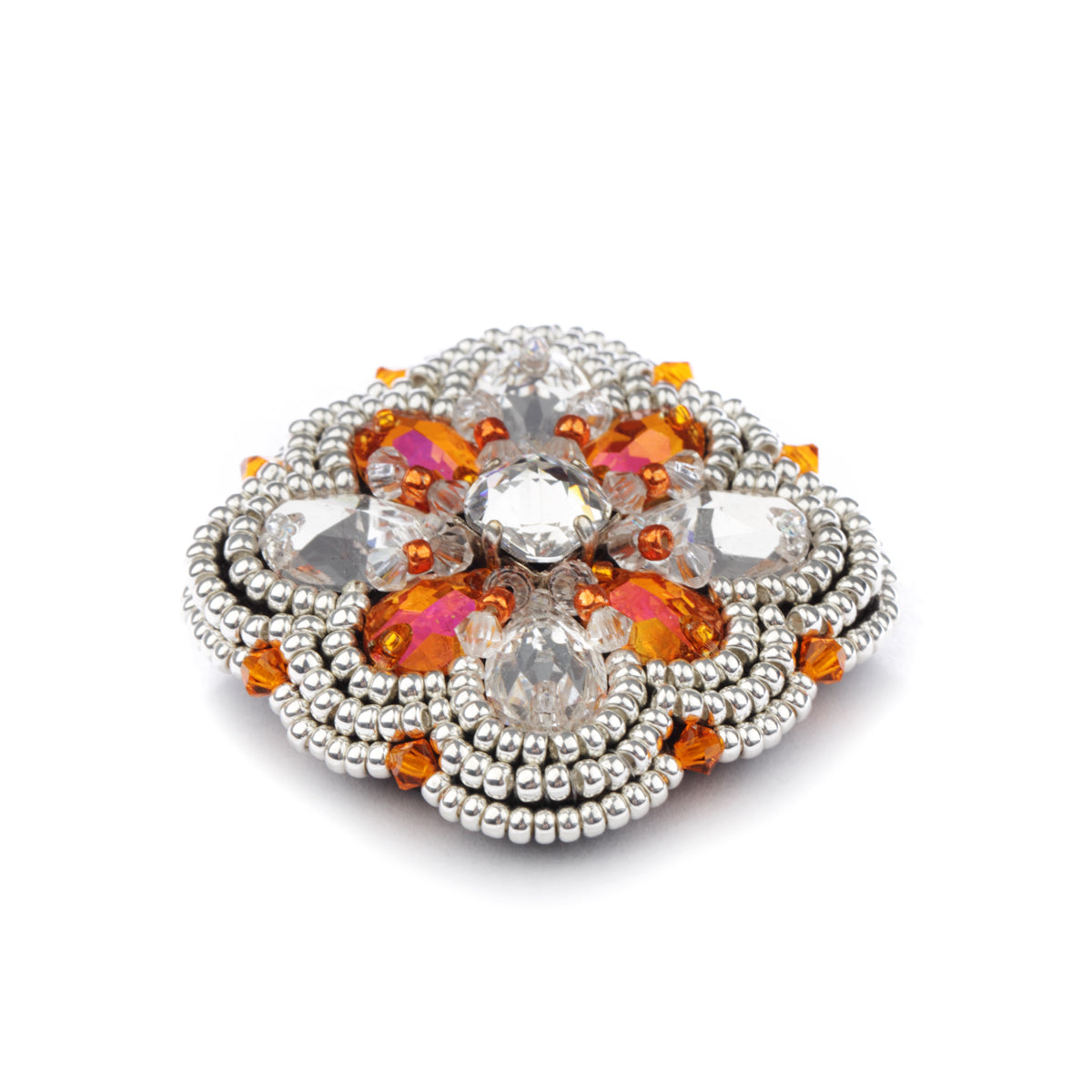 Objavte originálnu ručne robenú brošňu Dew No. 503 zo striebornej kolekcie brošní Dew. S elegantnými rozmermi 4,5 cm x 4,5 cm a váhou pod 15g je táto brošňa dostatočne ľahká na nosenie aj na najjemnejších látkach ako je hodváb.