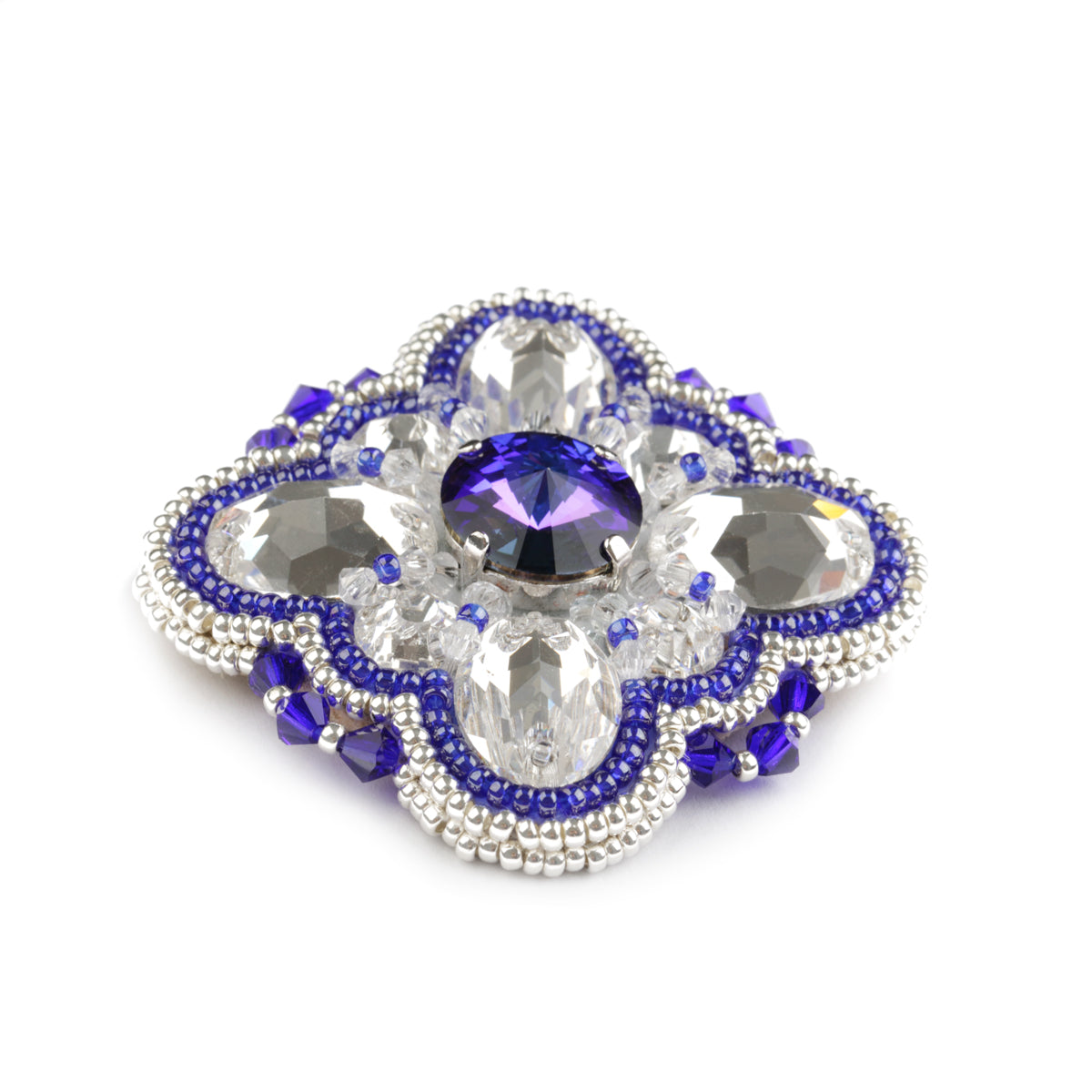 • Ručne prišité postriebrené a modré Miyuki korálky