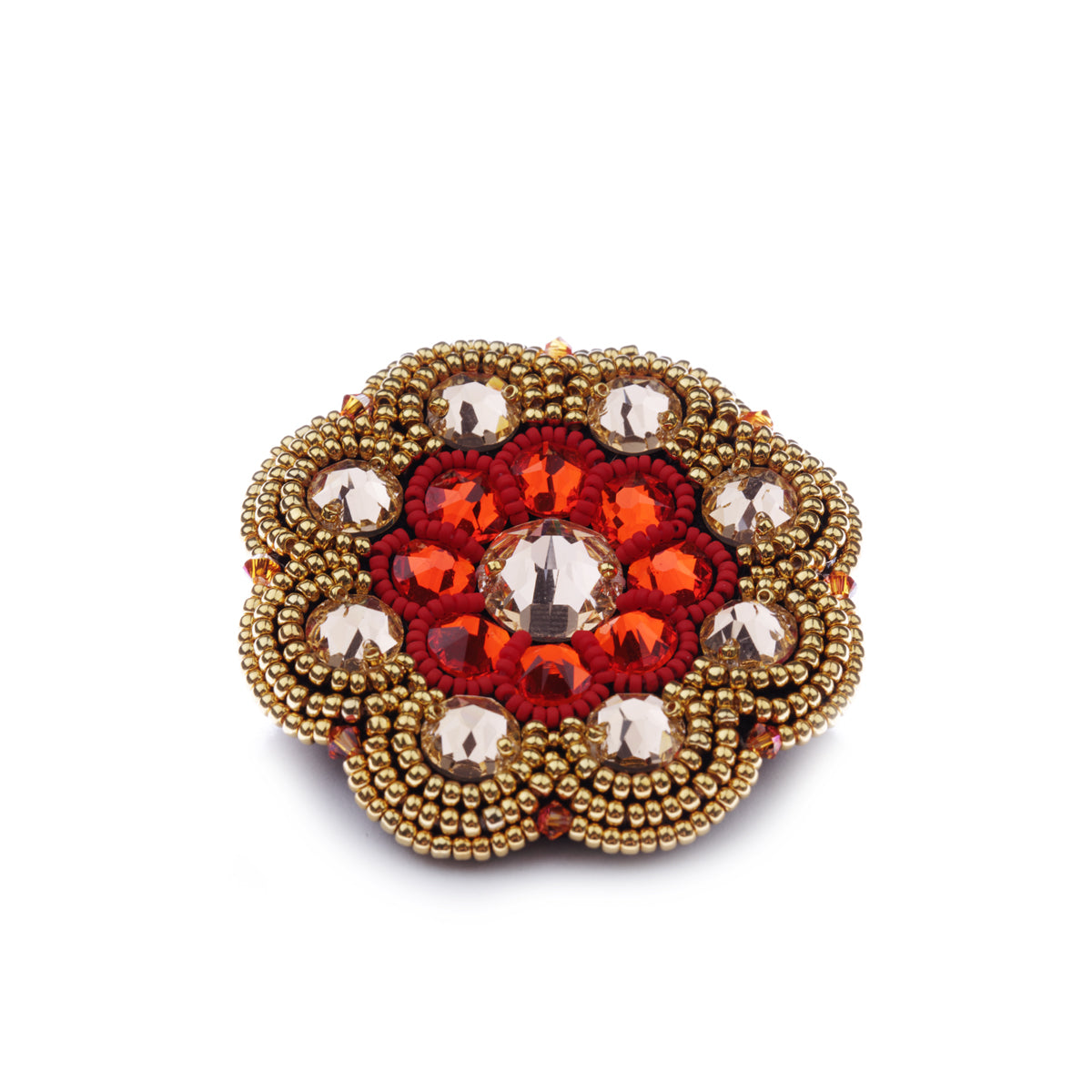 • Doplnená zvlášť prišitými pozlátenými a červenými Miyuki korálkami