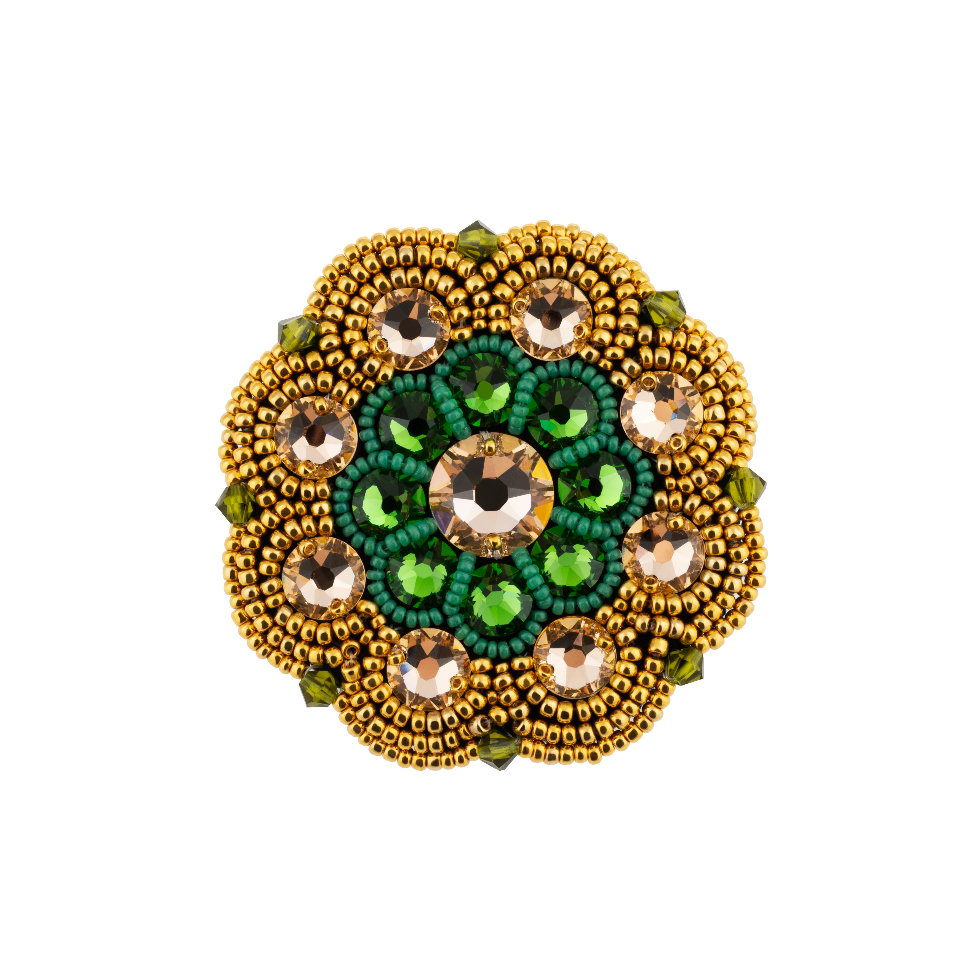• Doplnená prišitými pozlátenými a zelenými Miyuki korálkami