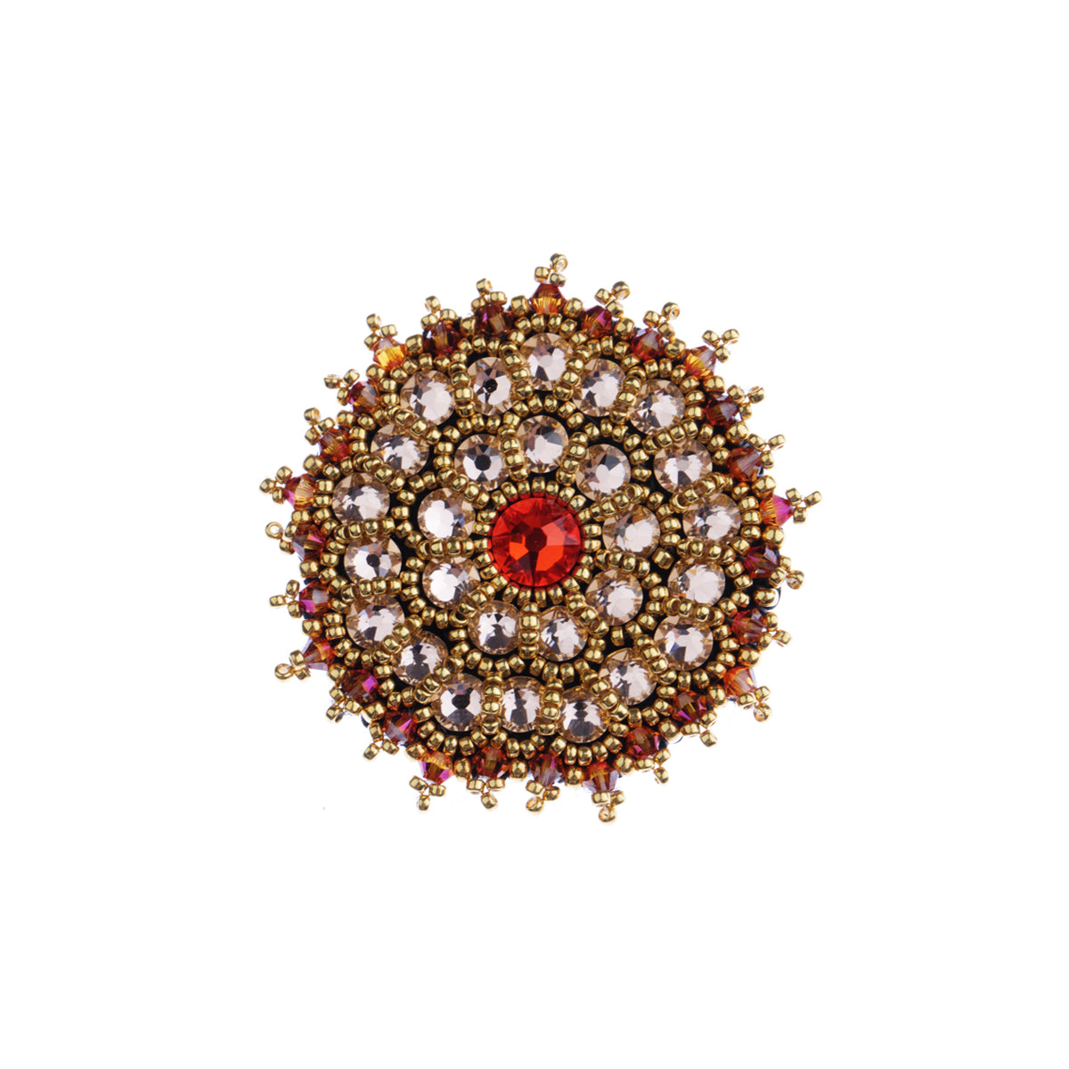 Objavte originálnu brošňu Glow No. 299, ktorá pochádza z našej zlatej kolekcie brošní Glow. S priemerom 4 cm a hmotnosťou pod 15g je ideálnym doplnkom aj na najjemnejšie materiály ako hodváb.