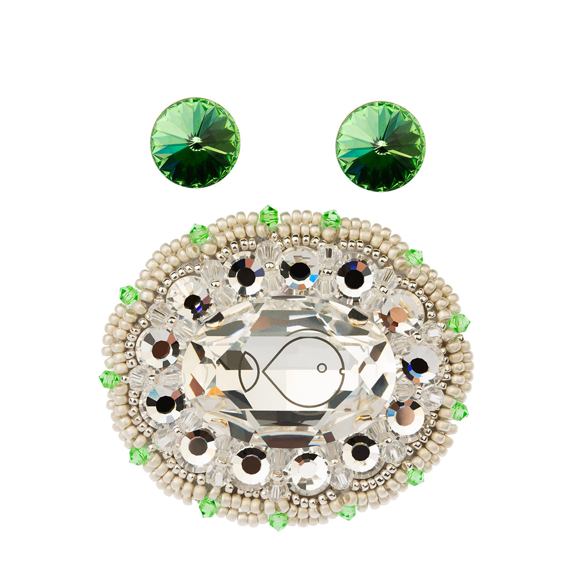Objevte exkluzívnu brošňu z kolekcie ZNAMENIA, venovanú znameniu Ryby. Tento originálny ručne robený kúsok dopĺňajú elegantné náušnice s kryštálom Swarovski v striebre (925).