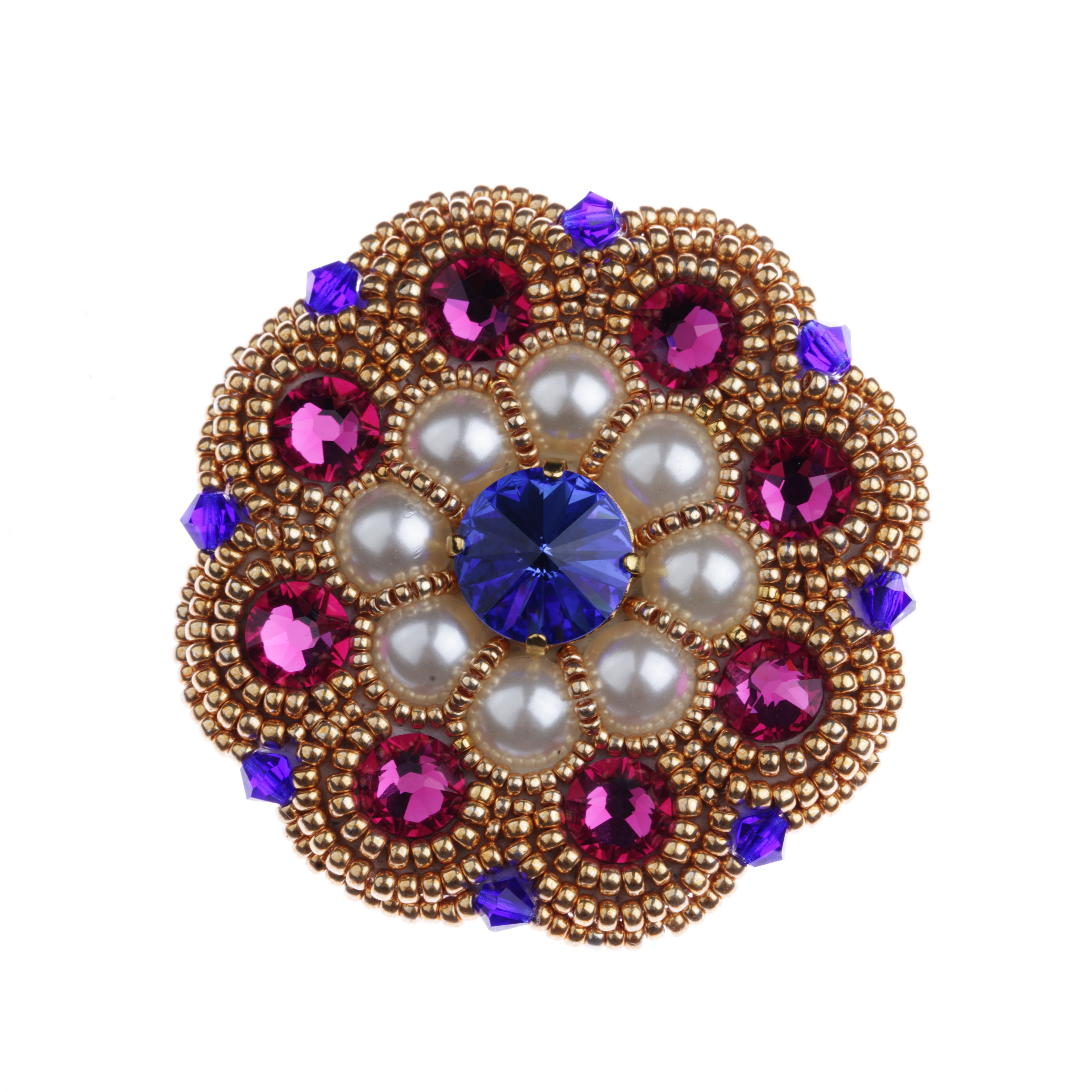 Originálna ručne robená brošňa No. 13 z jarnej kolekcie brošní Spring s priemerom 5 cm.