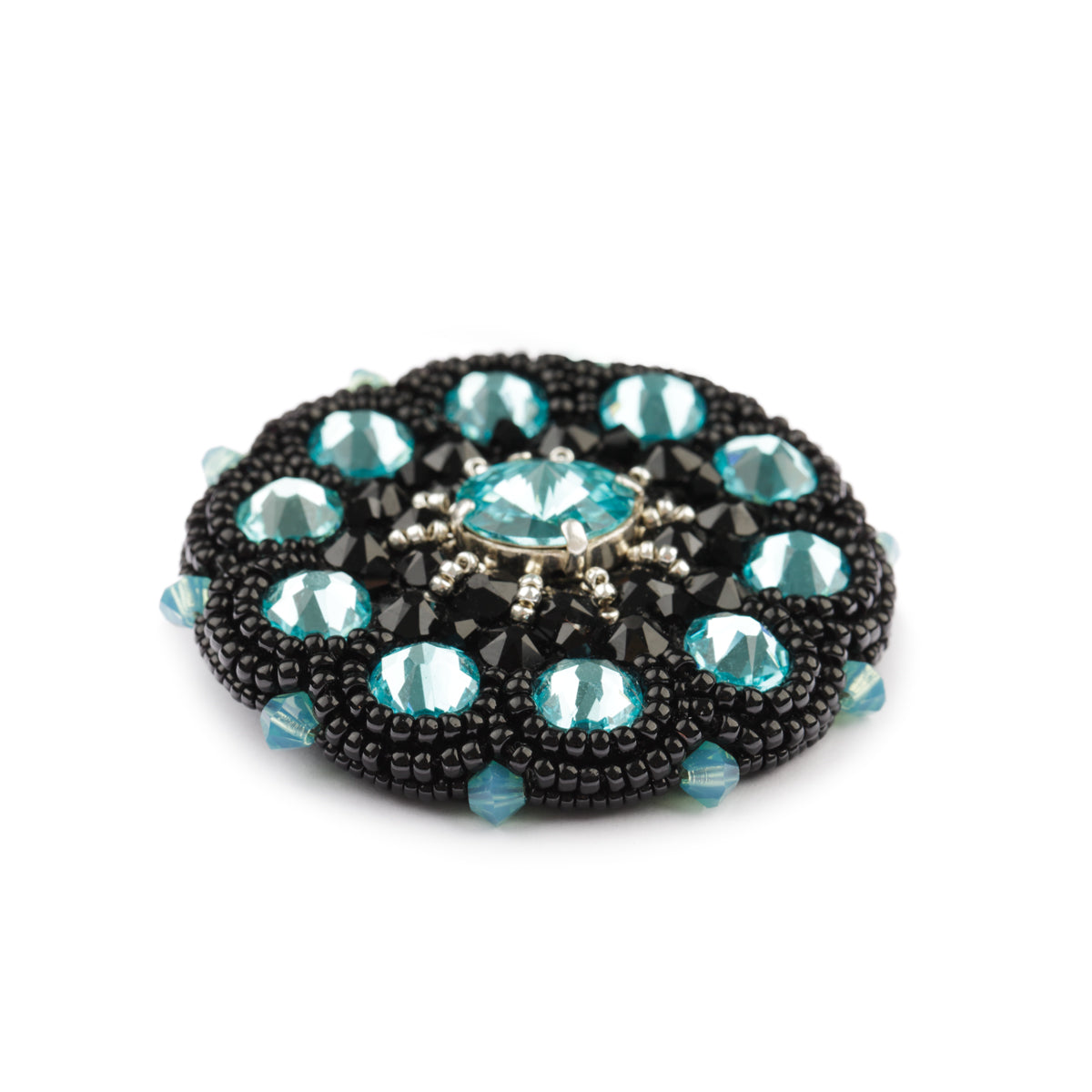 Objavte originálnu ručne robenú brošňu No. 06 z prestížnej večernej kolekcie Vesper. S priemerom 4,8 cm a váhou pod 15g je táto brošňa dostatočne ľahká na nosenie aj na najjemnejšom hodvábe.