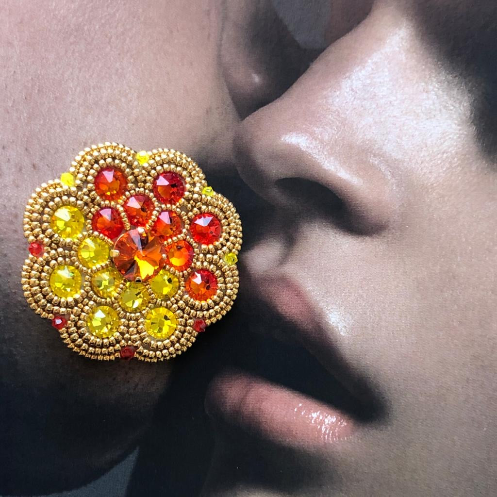 Originálna ručne vyrobená brošňa No. 06 z exkluzívnej letnej kolekcie Summer s priemerom 5 cm.