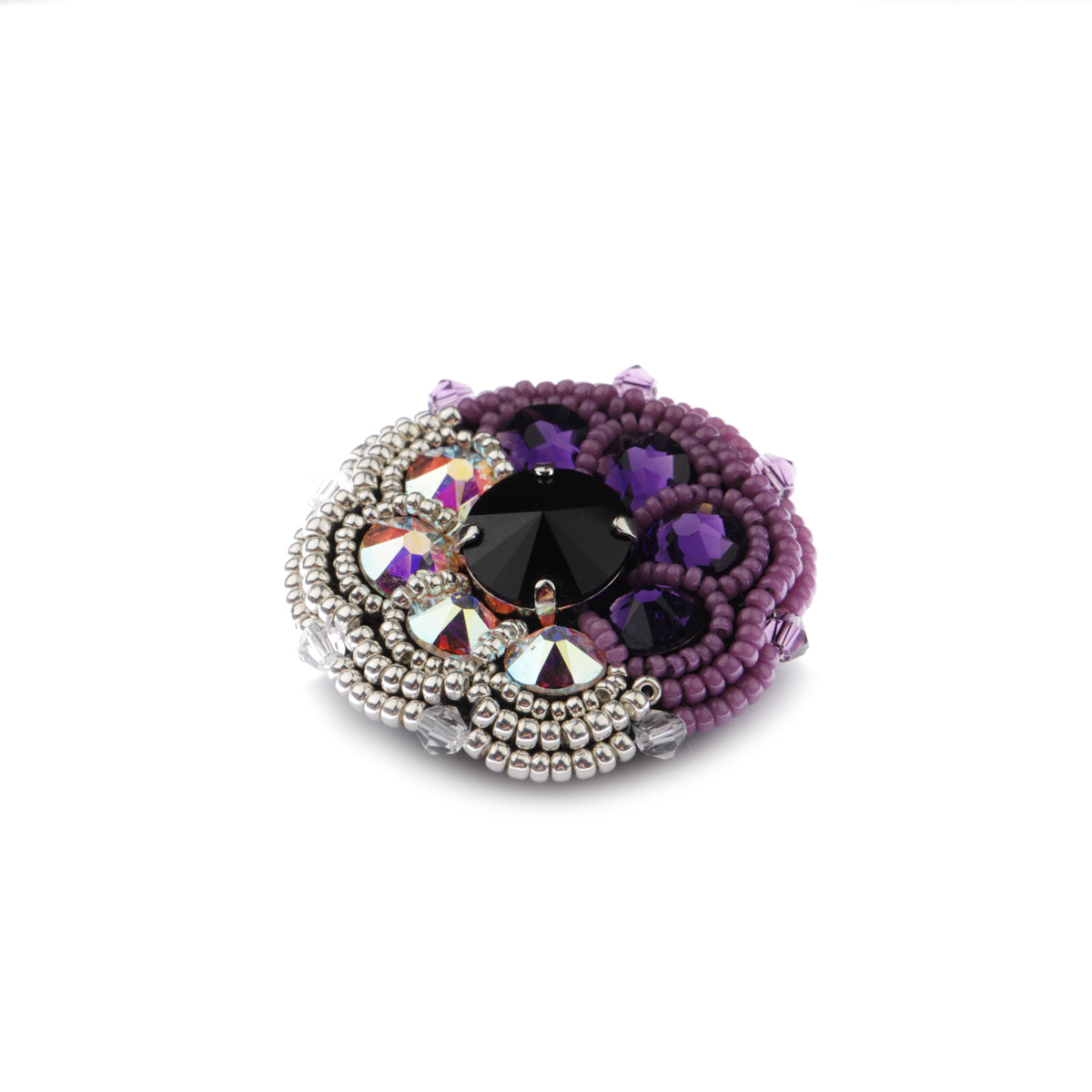 • Ručne prišité postriebrené a fialové Miyuki korálky
