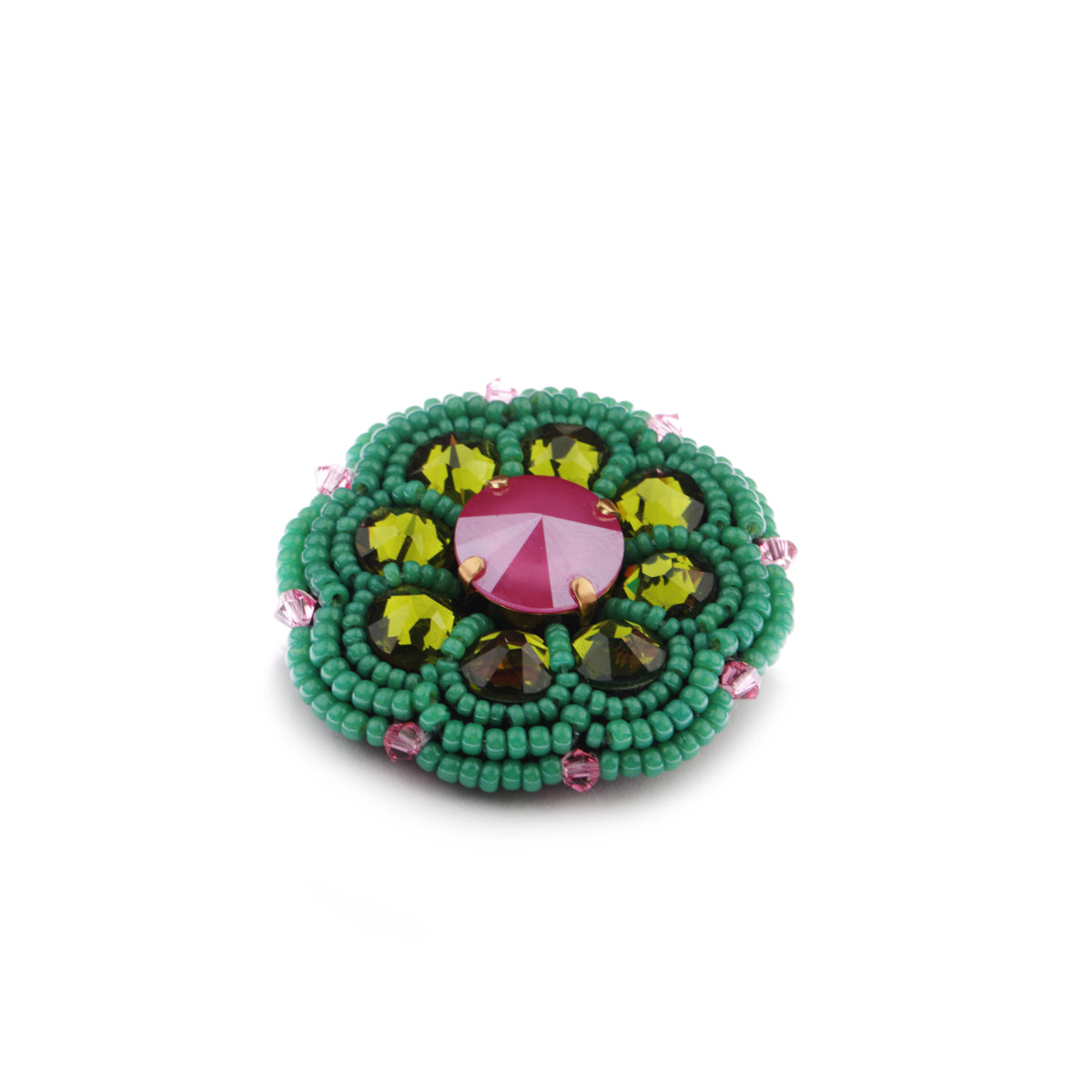 • Doplnená zvlášť prišitými zelenými Miyuki korálkami