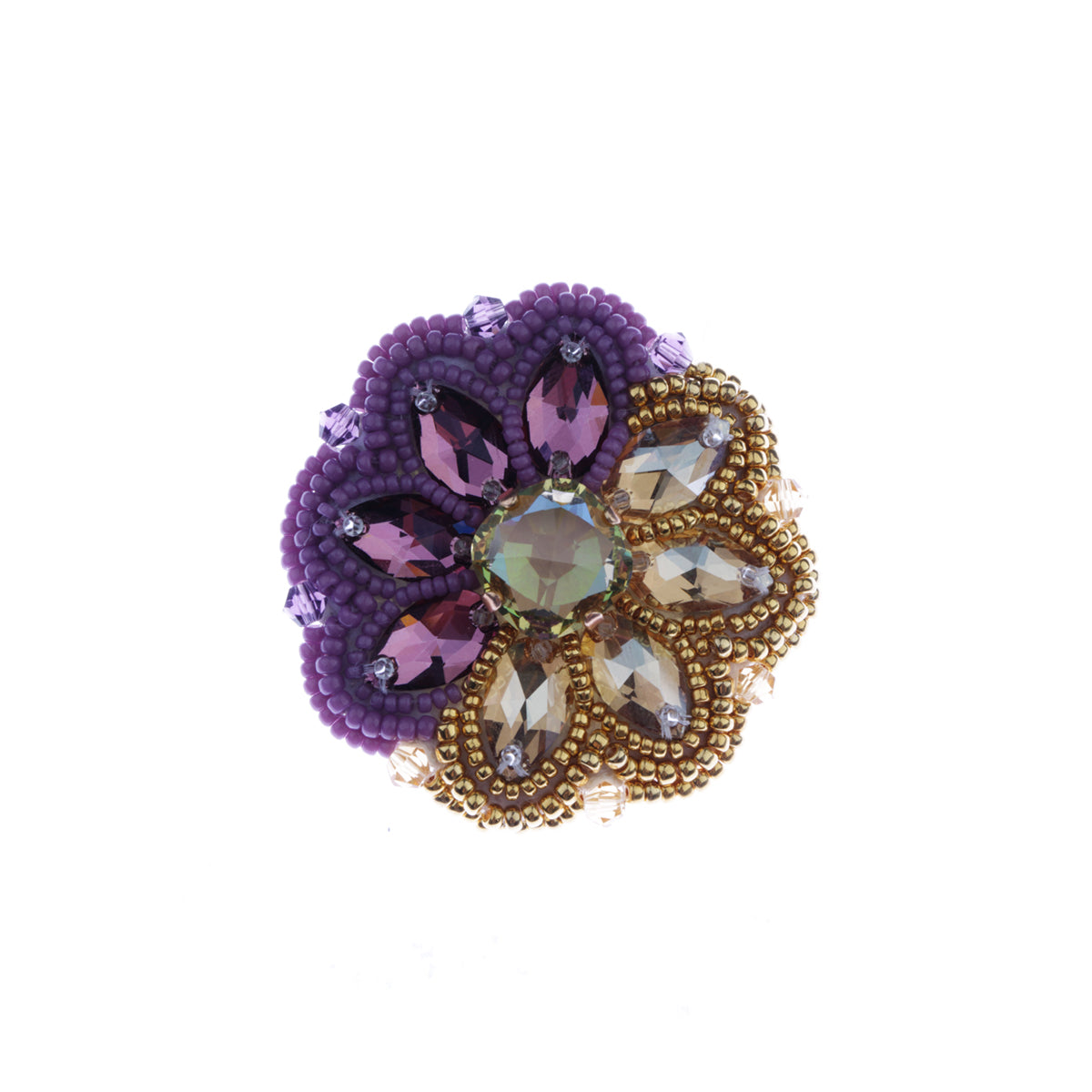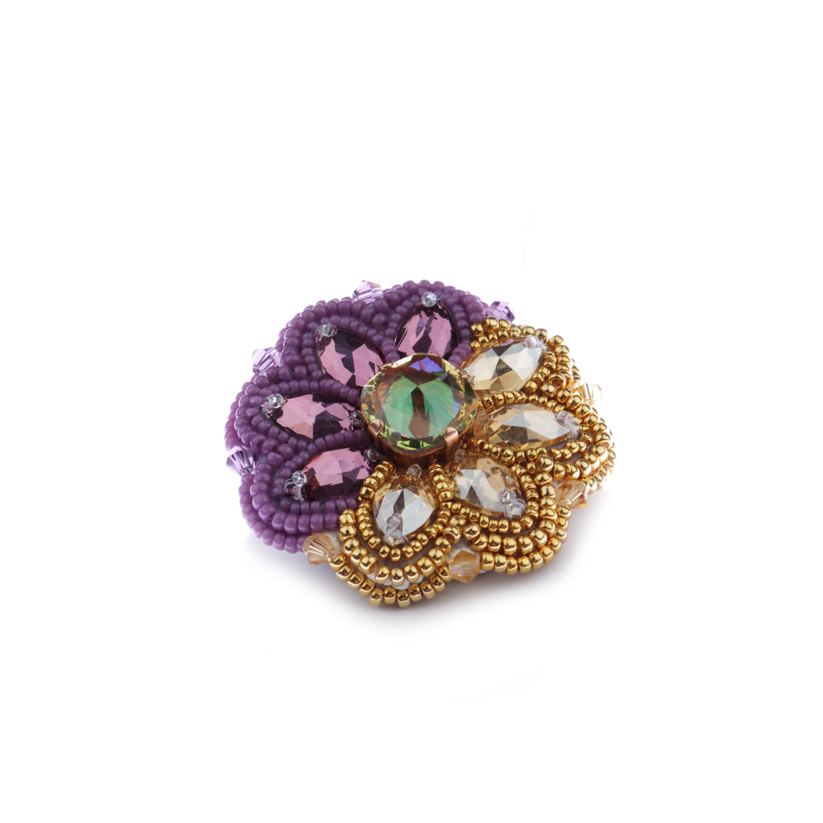 • Speciálne prišité pozlátené a fialové Miyuki korálky
