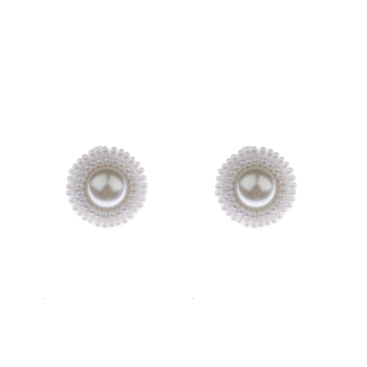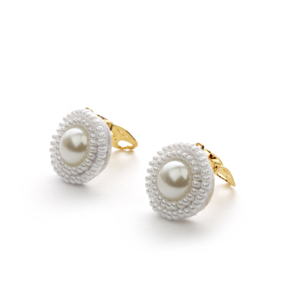 Originálne ručne robené klipsové náušnice zo svadobnej kolekcie Belle. Každý kus je vyrobený s mimoriadnou starostlivosťou zo skvostných syntetických perál a jemne prišitých bielych Miyuki korálok.