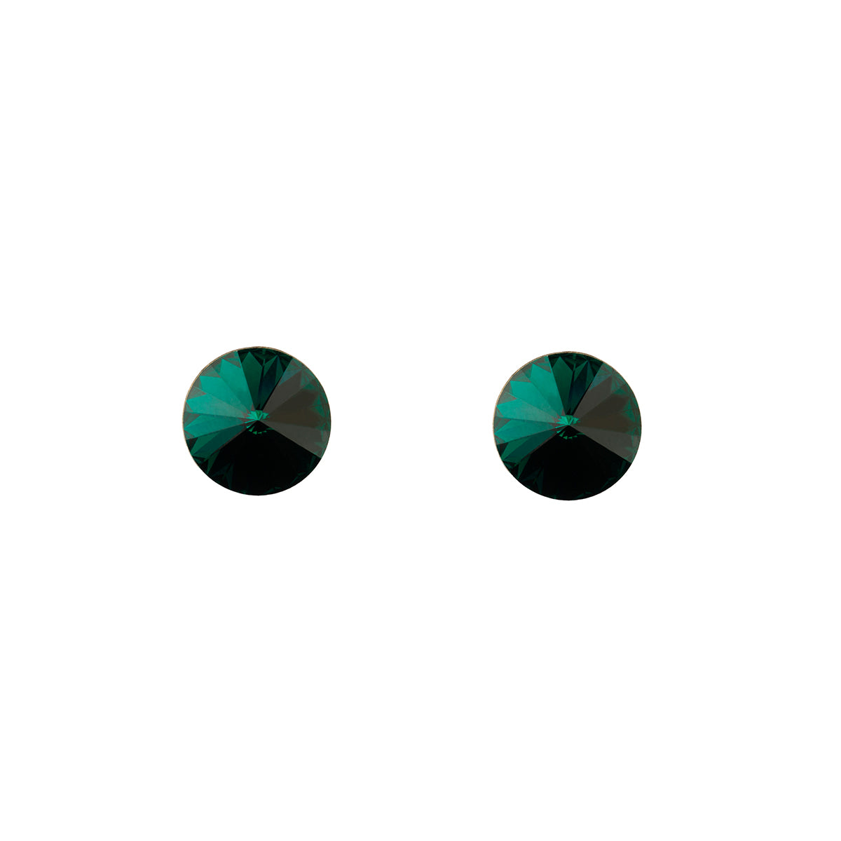 Elegantné strieborné (925) náušnice s tmavozeleným kryštálom Swarovski s priemerom 1 cm.