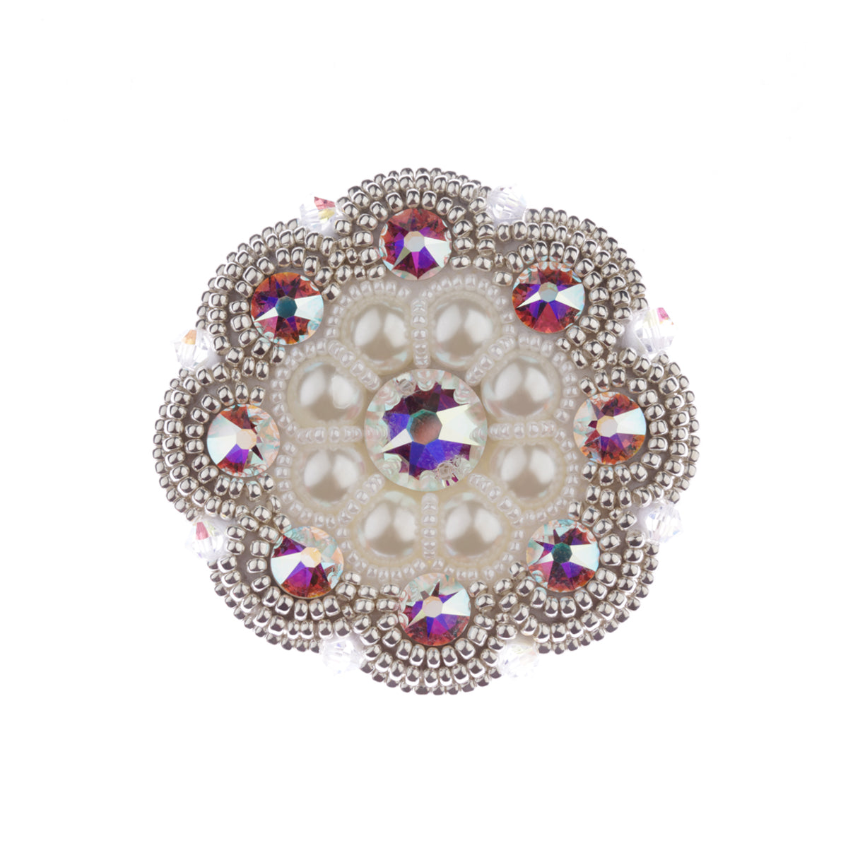 Originálna ručne robená brošňa zo zimnej kolekcie s priemerom 5,3 cm. Tento jemný šperk váži menej ako 15g, čo umožňuje jeho nosenie aj na najjemnejších látkach ako je hodváb.