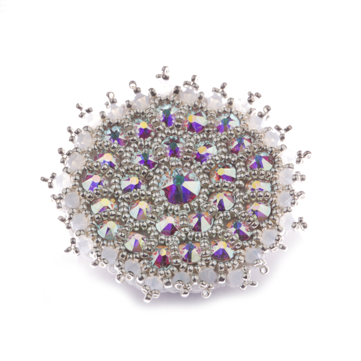 Predstavujeme originálnu ručne robenú brošňu No. 48 zo zimnej kolekcie. Tento jemný šperk s priemerom 4,5 cm je skutočným skvostom pre všetky príležitosti.