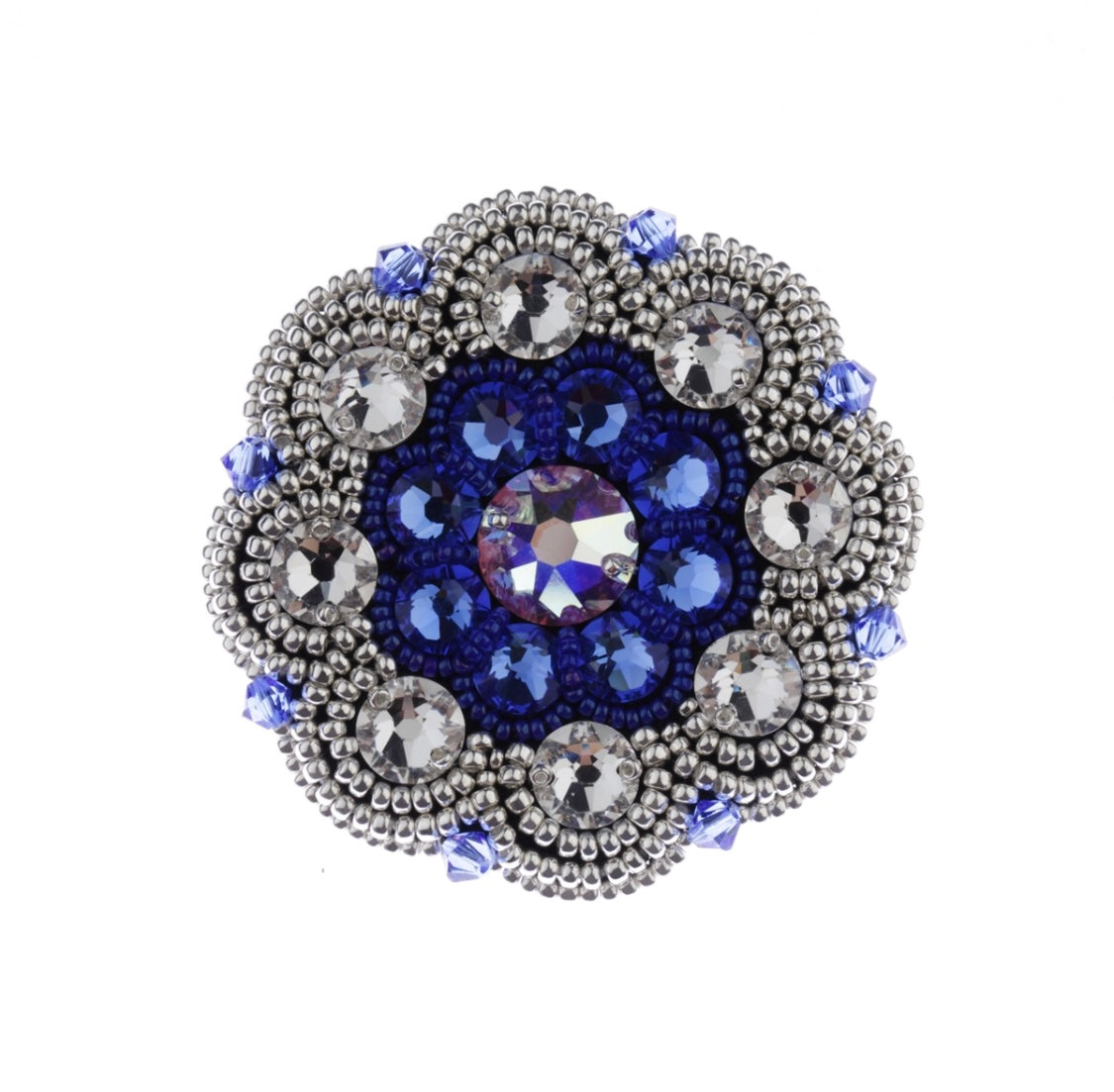 Táto elegantná brošňa s priemerom 5,3 cm je dielom skúsených remeselníkov a kombinuje:
