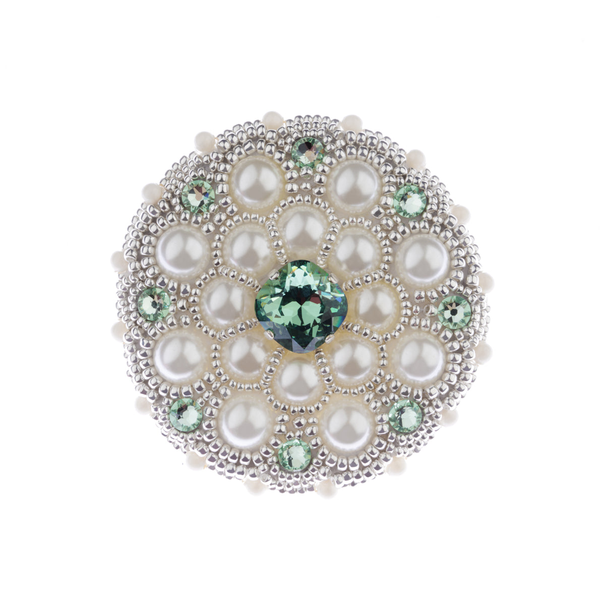 Objavte originálnu ručne robenú brošňu Winter No. 98 zo zimnej kolekcie. Tento jemný šperk s priemerom 5,3 cm a hmotnosťou pod 15g je dostatočne ľahký na nosenie aj na hodvábe.