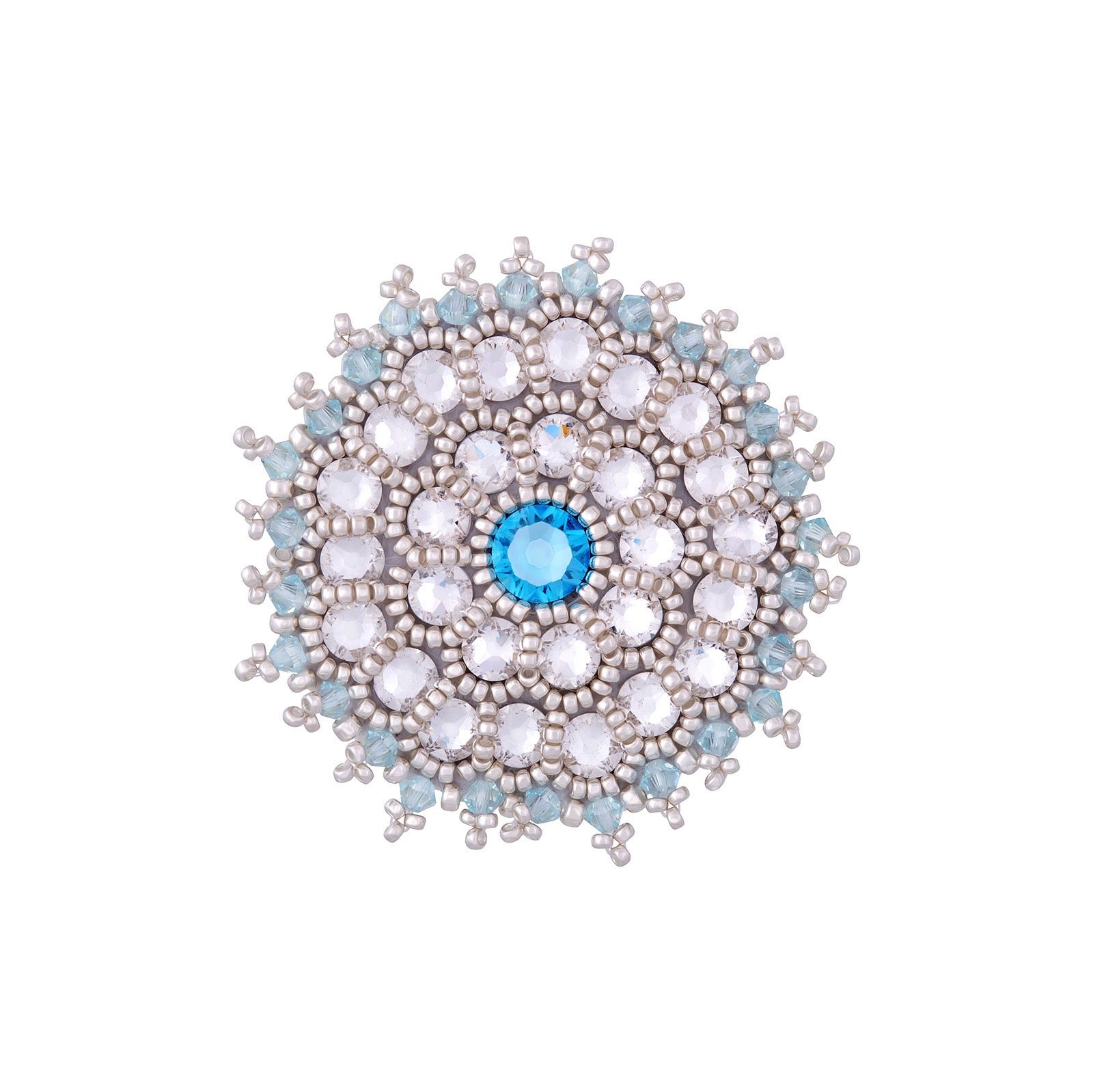 Objavte originálnu ručne robenú brošňu Winter No. 83 z našej zimnej kolekcie. Tento elegantný šperk s priemerom 4,5 cm a váhou pod 15 gramov je tak ľahký, že ho môžete nosiť aj na najjemnejších materiáloch ako je hodváb.